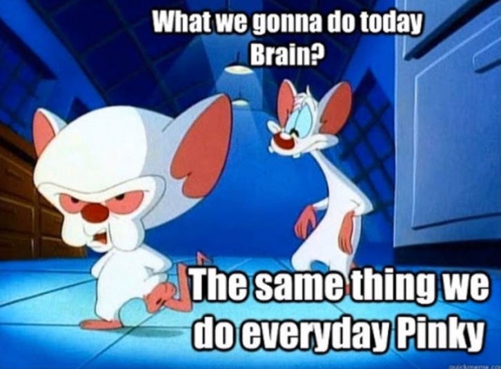 1) What are we gonna do today, Brain? The same thing we do everyday, Pinky… Try to take care of the child.
